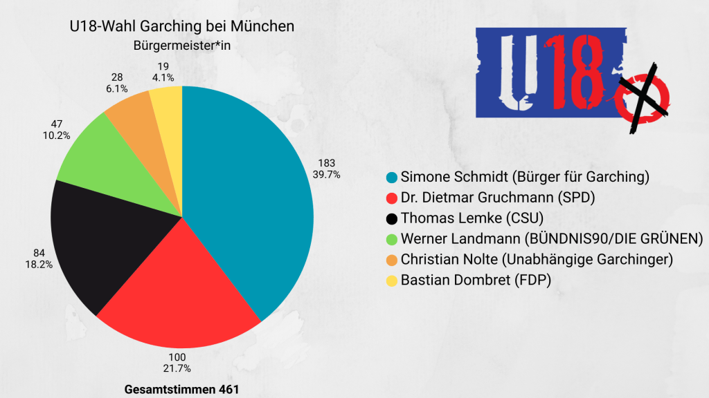 - Simone Schmidt (Bürger für Garching): 183 Stimmen (39,7 %)